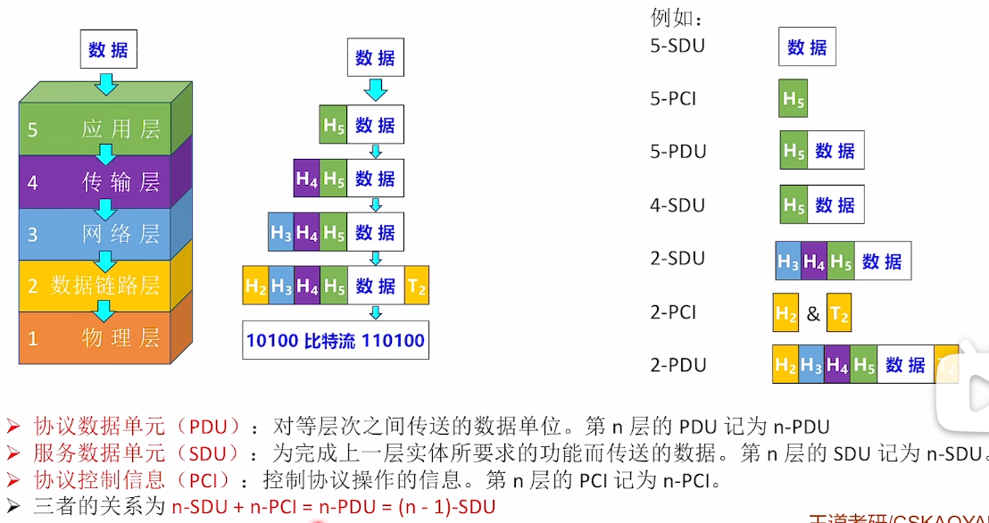 实体、对等实体、协议(水平)、功能、接口、服务、PCI(首部、尾部)