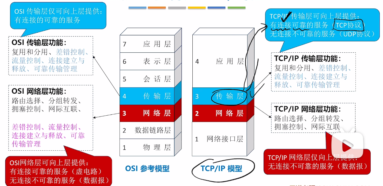 网络层:无连接不可靠(数据报:无序,有检错(丢弃))、有连接可靠(虚电路:分组有序正确)