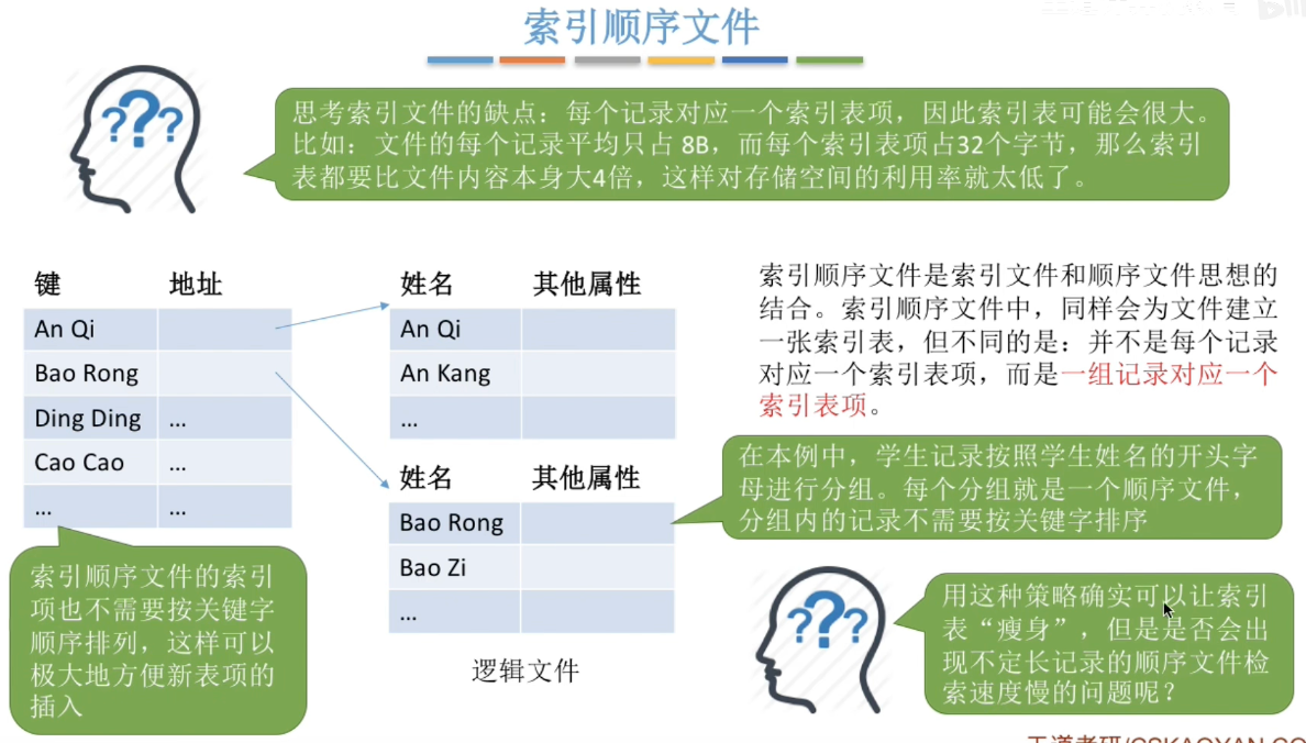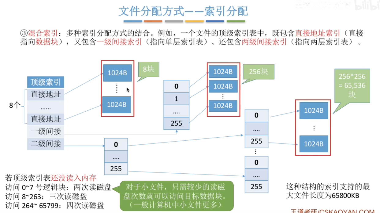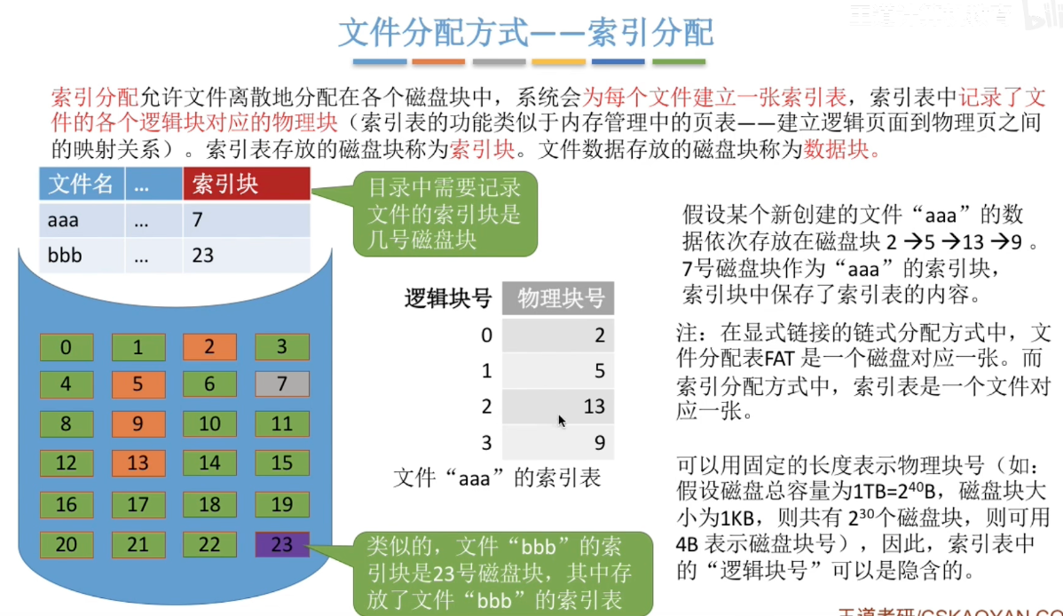 逻辑上索引文件在物理上用索引分配
