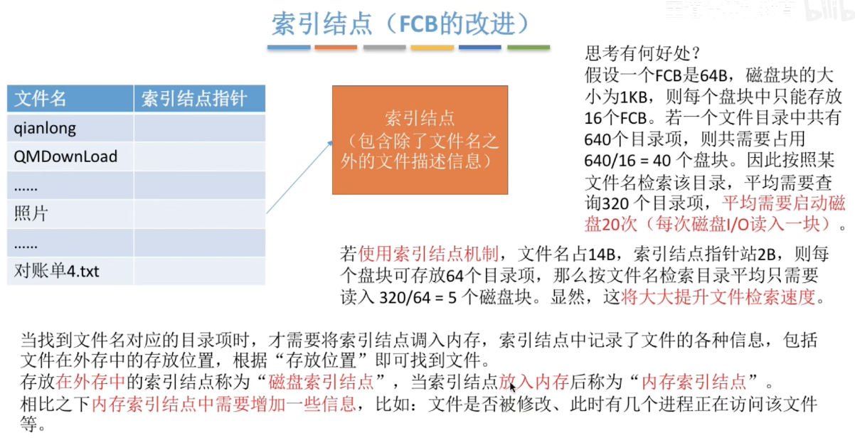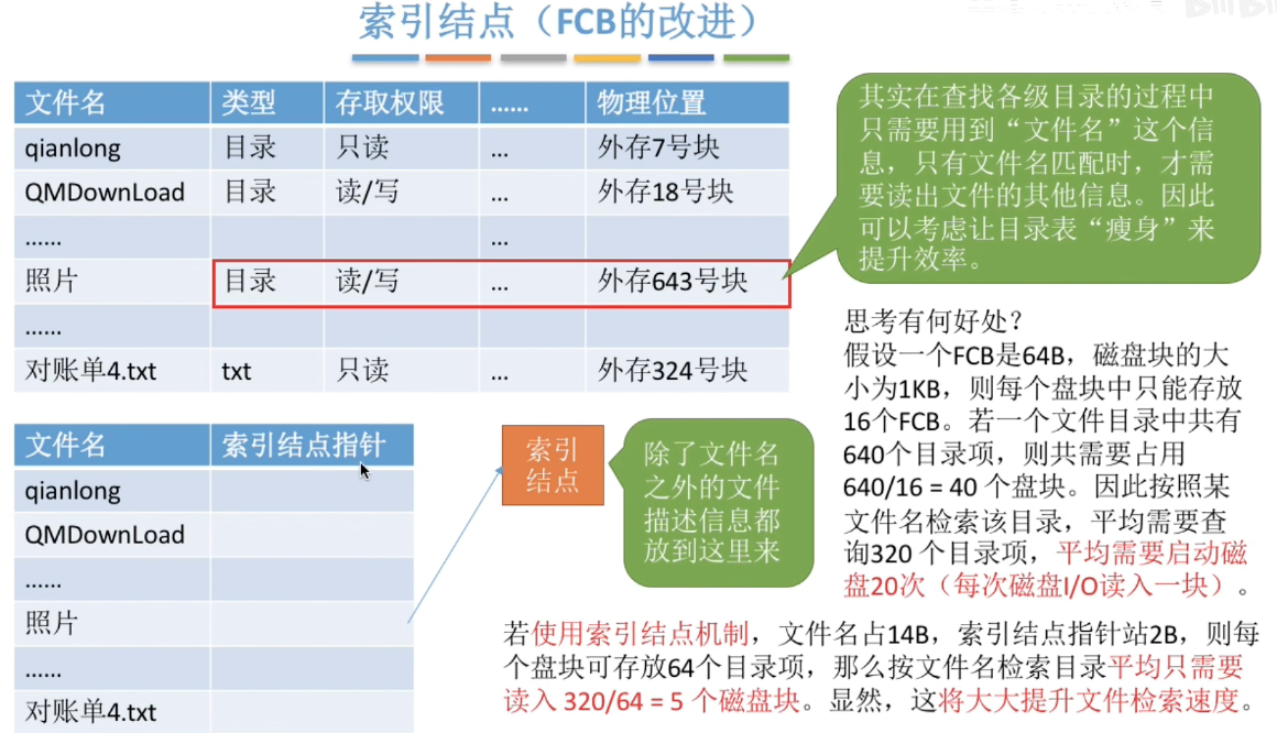 - 文件目录实现、结构分类、索引结点?