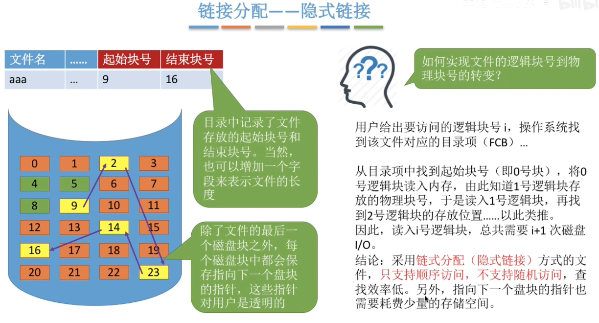 1. 隐式链接(普通链表):必须读盘才能找到路